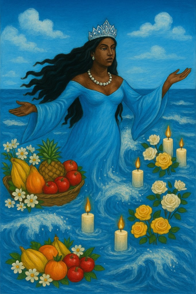 Le 2 février est une date sacrée, il n’y a pad que la Chandeleur, Imbolc ou la sainte Brigitte, il y aussi dédiée à Yemanjá, grande déesse des eaux, mère universelle, protectrice et nourricière. Reine de l’océan, elle veille sur les foyers, les familles, les émotions et les chemins de vie.