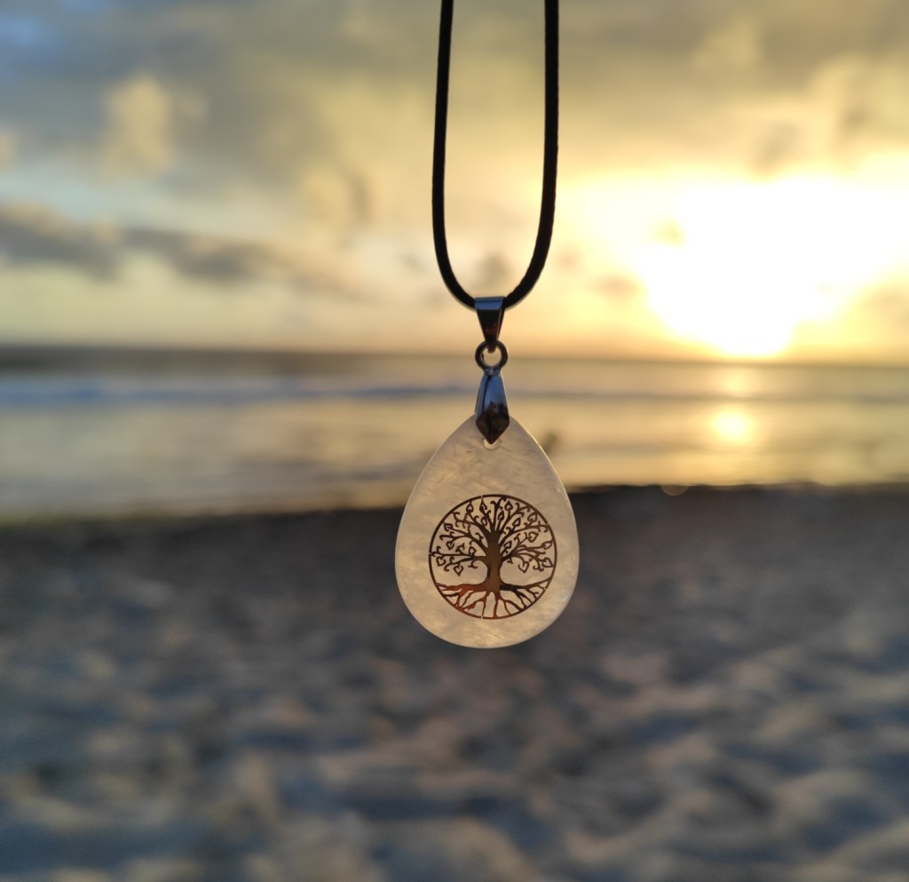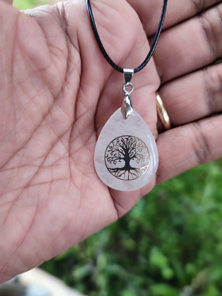 L’arbre de Vie est un symbole universel d’origine sacrée. Il représente le cycle de vie, le bonheur, le savoir, la spiritualité, la famille, la force et la renaissance. Associer à la puissance du cristal de roche, ce pendentif attirera des ondes positives et vous portera la chance dans vos projets.
