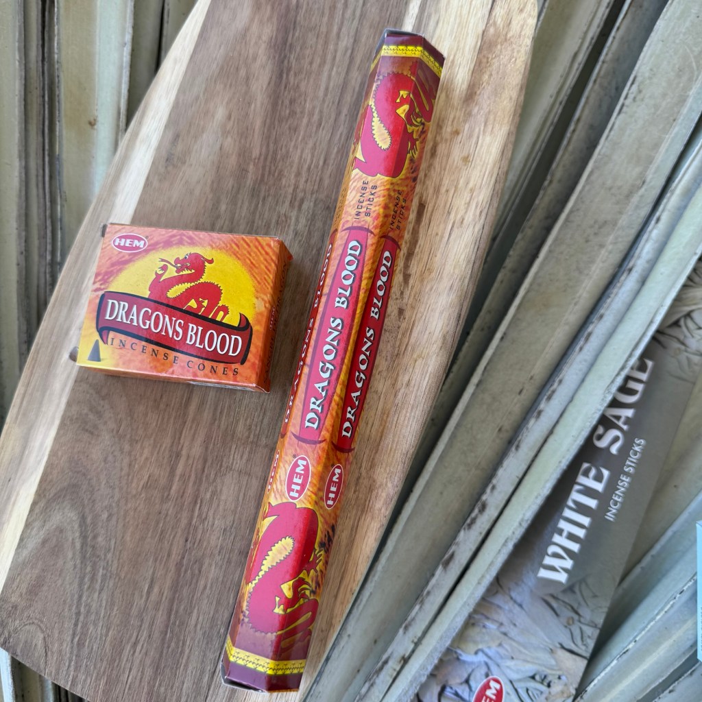🔹 Sang de Dragon (bâton+cônes) – Idéal pour sceller la protection, renforcer l’ancrage et intensifier les rituels