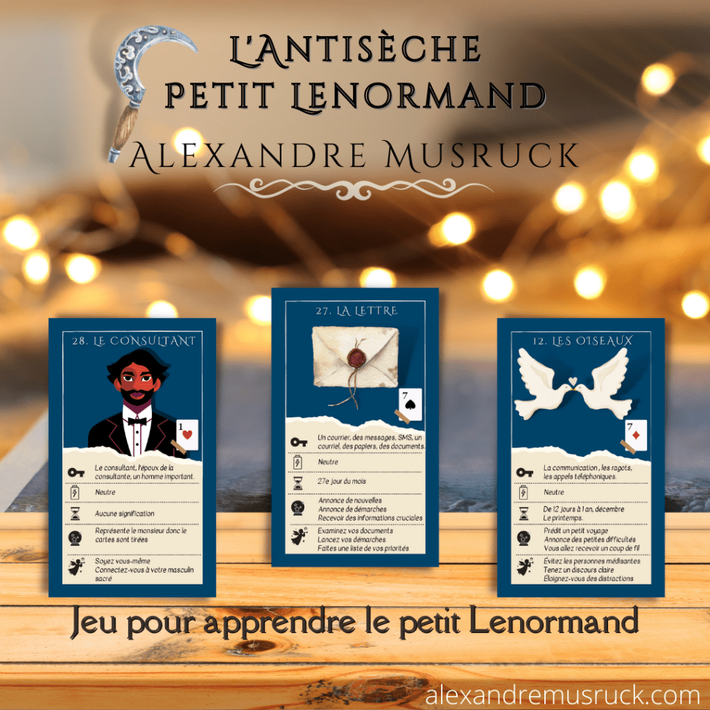 Après avoir offert plus d’une centaine de cours gratuits sur Youtube et après l’instante demande des abonnés pour une formation structurée sur le Petit Lenormand, Alexandre Musruck aka « The Lenormand extraordinaire a créé: « La formation Petit Lenormand en Ligne »