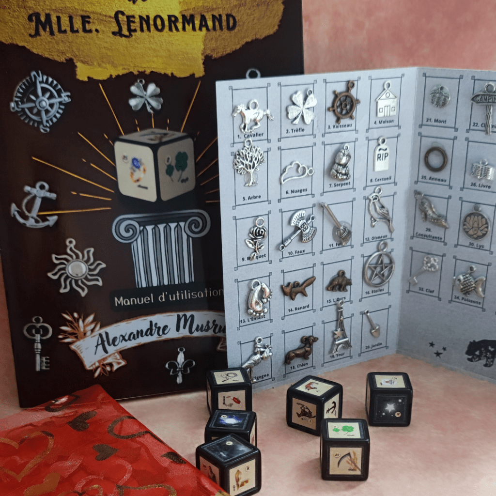 L’idée d’utiliser un oracle cléromantique basé sur le Petit Lenormand m’est venue lors d’une consultation où j’ai été guidé à utiliser des dés et des breloques en combinaison avec les cartes du Petit Lenormand.