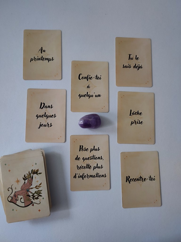 L’oracle des augures est un jeu de 54 cartes qui vous permet de répondre sans détours à toutes vos interrogations. Vous pouvez l’utilisez en conjonction avec d’autres oracles ou tarot pour un tirage dans le mile.