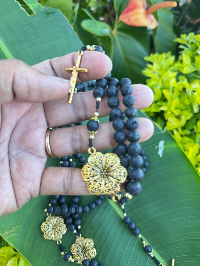 Ce chapelet en pierre de lave est bien plus qu’un simple objet spirituel… C’est un véritable compagnon d’âme, conçu pour t’accompagner dans tes moments de recueillement, de prière et de recentrage.