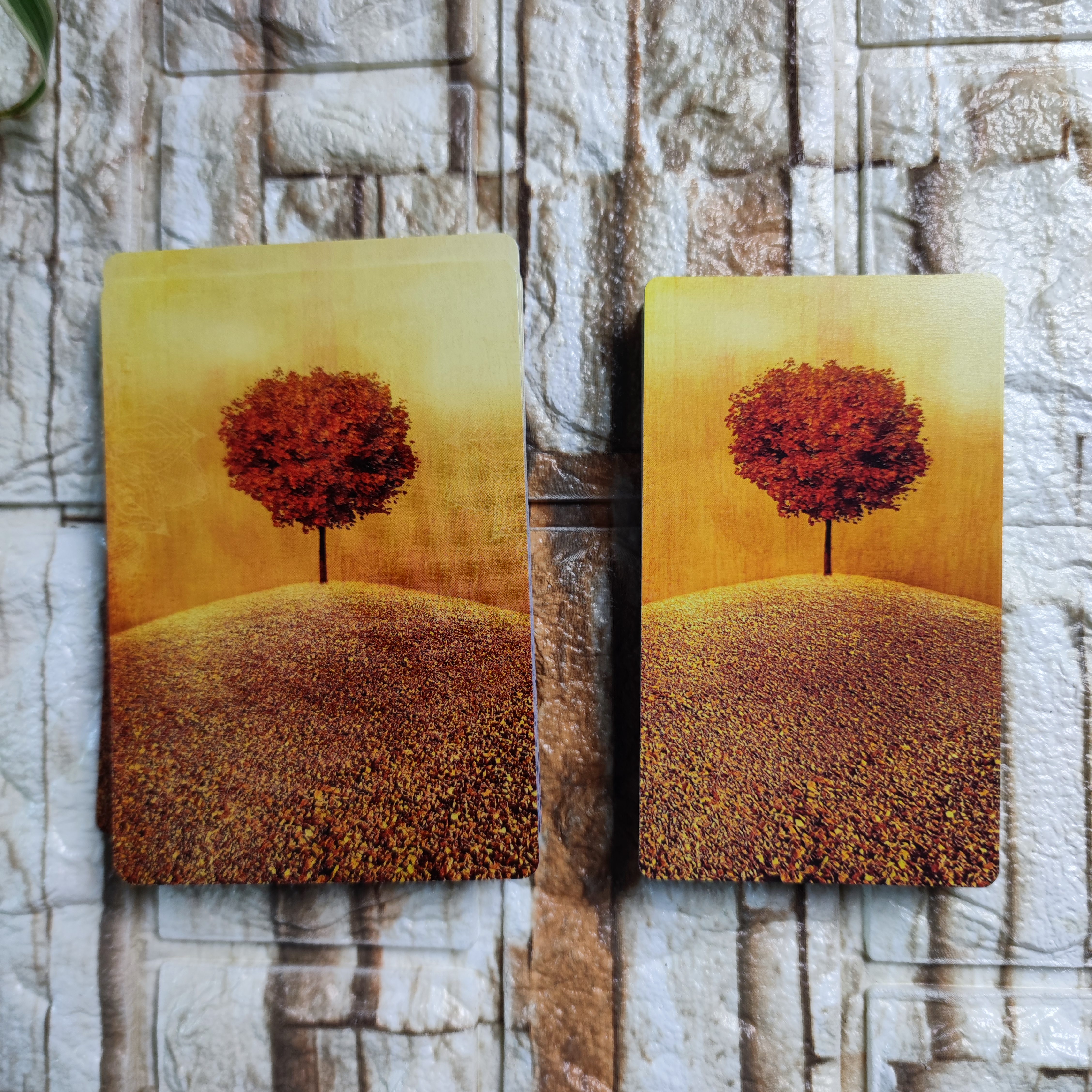 La première version du jeu est maintenant épuisé et nous avons décider d’en faire un deuxième à la tailles des cartes de tarot pour que vous puissiez l’emmener partout avec vous. A la place de sa boite blanche, il sera maintenant disponible en boite en couleur.