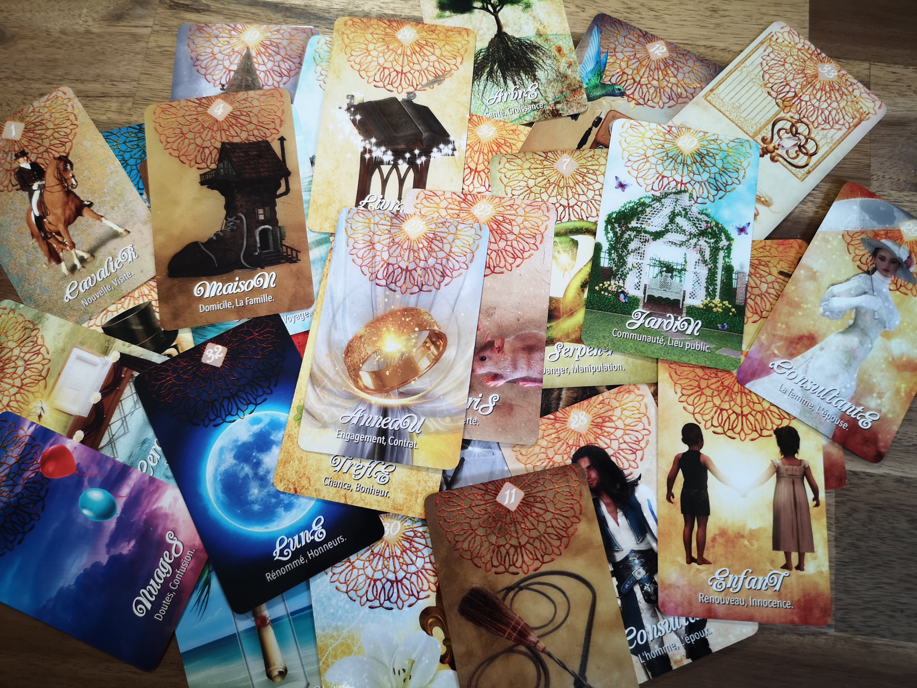 – Le Jeu du Spirit Lenormand de 36 cartes + 2 alternatif pour le Monsieur et la Dame.