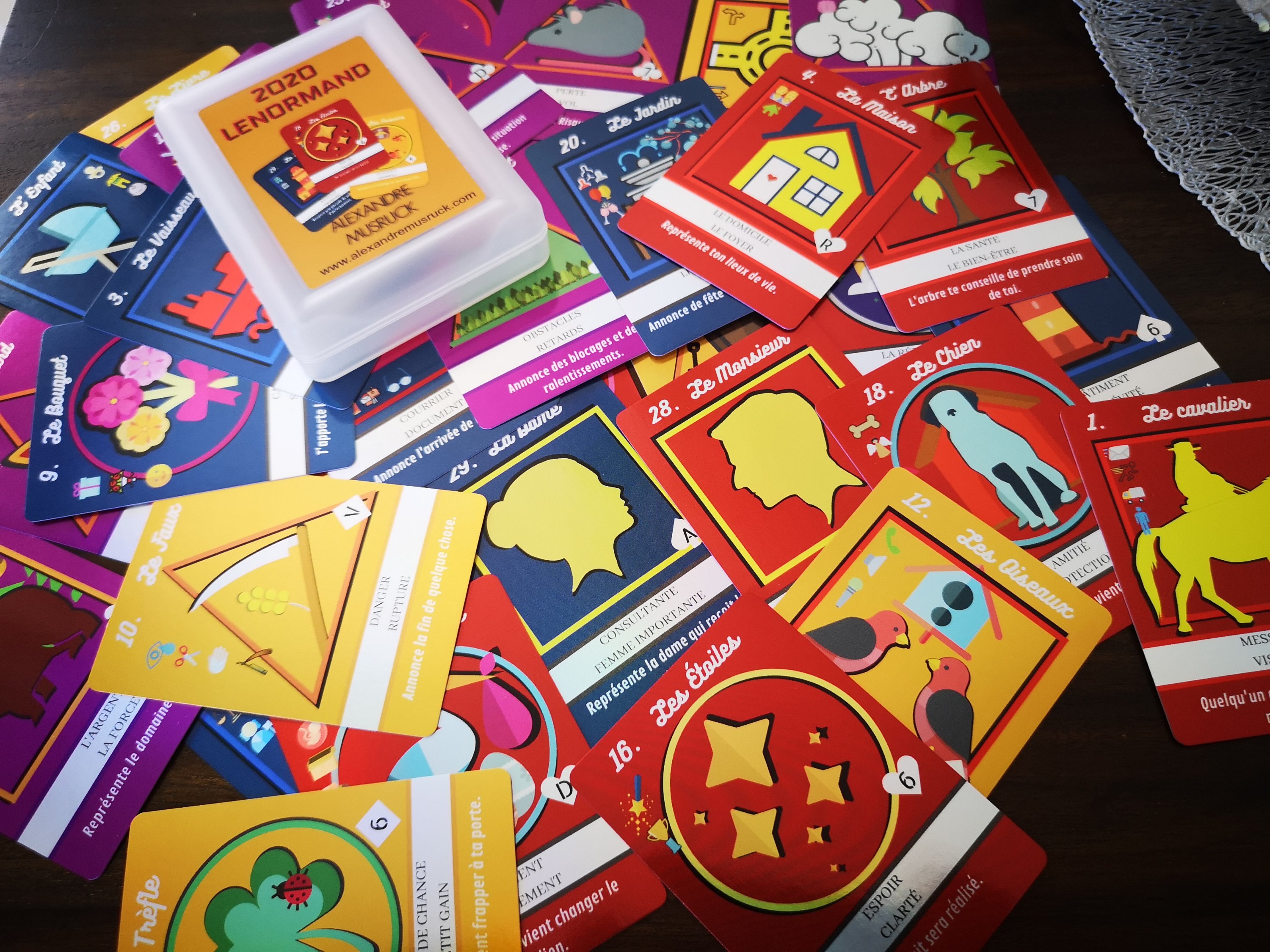 Le 2020 Petit Lenormand est un l’oracle qui allie beauté, couleur et intuition. Un jeu idéale pour ceux qui veulent apprendre le Petit Lenormand car tout est inscrit sur les cartes. L’effet holographique des cartes reflètent la lumière comme un arc-en-ciel et le jeu vient avec un livret PDF et dans une boîte en plastique.