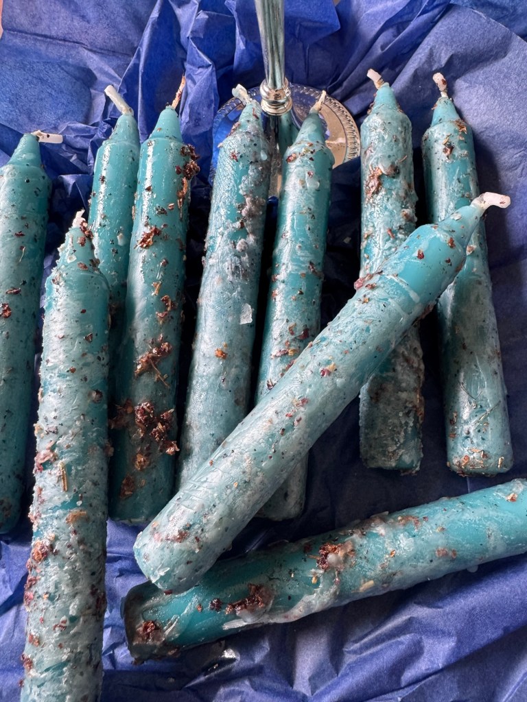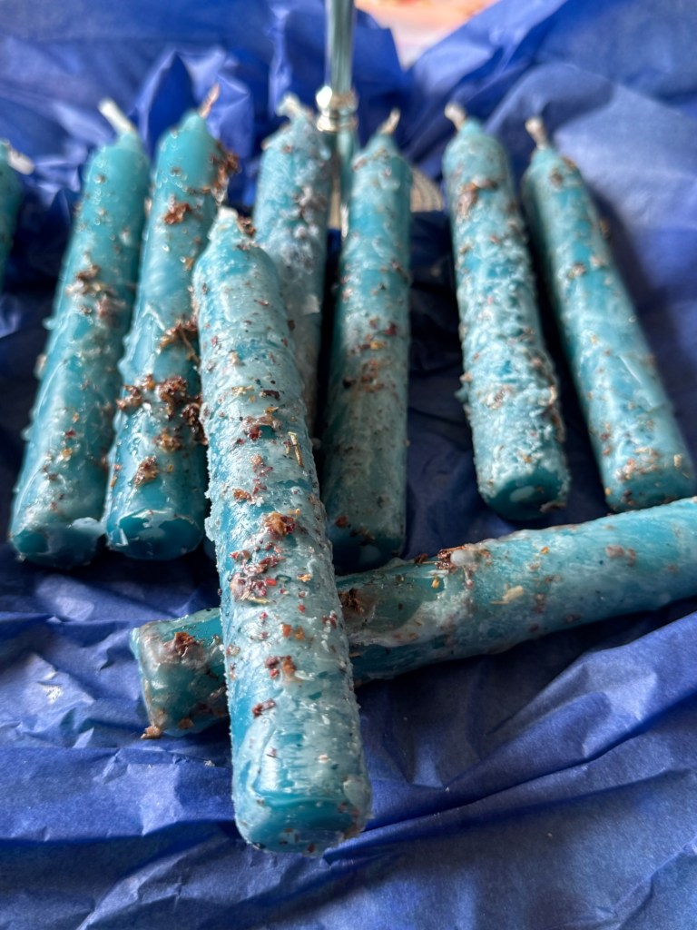 Beaucoup d’entre vous m’ont demandé une bougie spéciale pour célébrer la fin de l’année et accueillir les énergies positives du renouveau. C’est avec joie que je vous présente les bougies bleues rituelles, spécialement créées pour cet objectif sacré.