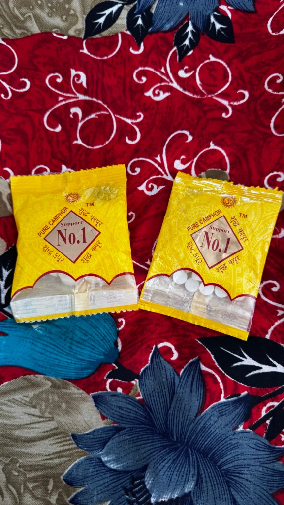 Le camphre est soigneusement conditionné dans un sachet hermétique pour garantir sa fraîcheur et préserver ses propriétés. Chaque sachet contient entre 10 et 15 grammes, en fonction de l’épaisseur de la tablette lors de sa fabrication.