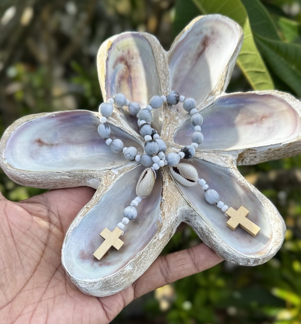 Dizainier + Chapelet Enchanté aux Larmes de Job et Coquillages Cowri pour la France : 25€